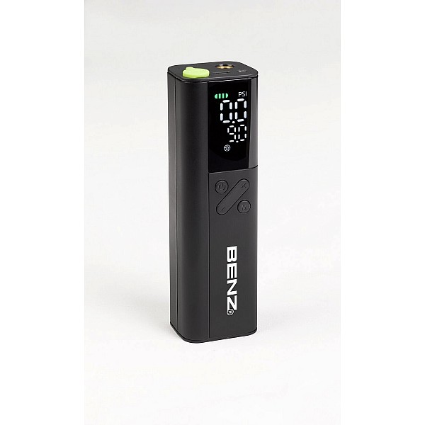 Der Benz Ball Kompressor Mobil ist ein kompakter, akkubetriebener Kompressor zum Aufpumpen von Bällen und Reifen. Mit seinen Maßen von 146 x 42,4 x 36,6 mm und einem Gewicht von 250 g eignet sich das Gerät für den mobilen Einsatz im Sportbereich. Das Gehäuse besteht aus robustem ABS-Kunststoff, was für eine hohe Widerstandsfähigkeit im täglichen Gebrauch sorgt. Der integrierte Akku mit einer Kapazität von 2600 mAh lässt sich über das eingebaute USB-Kabel innerhalb von etwa 2 Stunden vollständig aufladen.