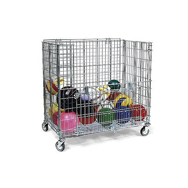 Ballwagen, fahr- und klappbar, mit zusätzlicher Entnahmeklappe, ideal für Kinder. Bei Nichtgebrauch lässt sich der Wagen platzsparend zusammenfalten. Tragkraft: ca. 150kg. Außenmaße: 100 x 100 x 60 cm aufgebaut, 100 x 100 x 20 cm in gefaltetem Zustand.