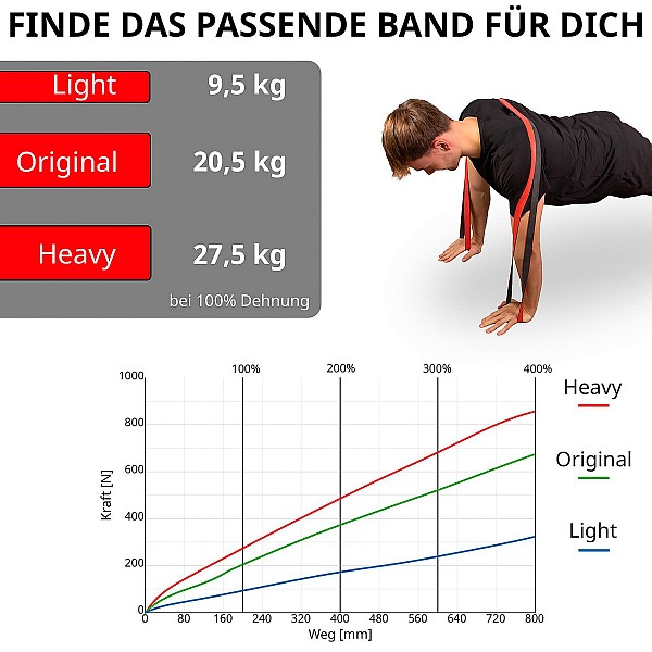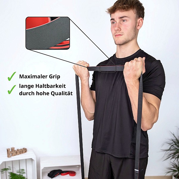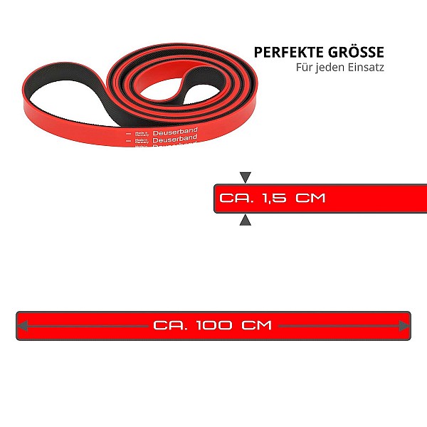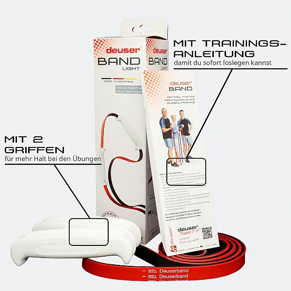 Ausführung wie Original Deuserband jedoch mit 40% verminderter Zugkraft. Optimales Trainingsgerät zum Muskelaufbau nach Verletzungen, Krankheit usw. Endloses Gummiband ca. 15 mm breit, 100 cm lang, mit praktischen Kunststoffgriffen.