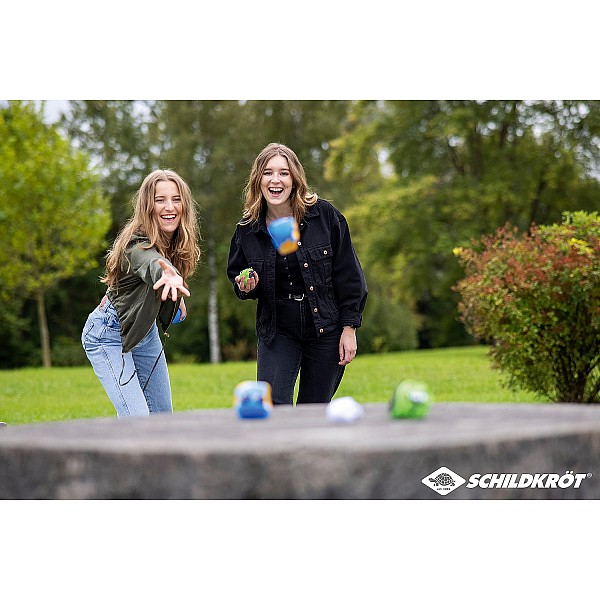 Mit dem Crossboccia Double-Pack Heros im mit „Maxican + Dude“-Design können Anfänger ganz leicht die neue Variante des klassischen Bocciaspiels ausprobieren. Bei dieser Spielart wird auch die Umgebung, jeder Ort mit in das Spiel einbezogen. Die Besonderheit, Crossboccia wird kleinen Bällen aus Stoff mit Granulatfüllung gespielt. Das Set ist für 2 Spieler ausgelegt und beinhaltet 2x 3 gleichfarbige Stoffsäckchen und 1 Zielkugel. Die Stoffsäckchen lassen sich nach dem Spiel mit etwas Seife auch wieder leicht reinigen.