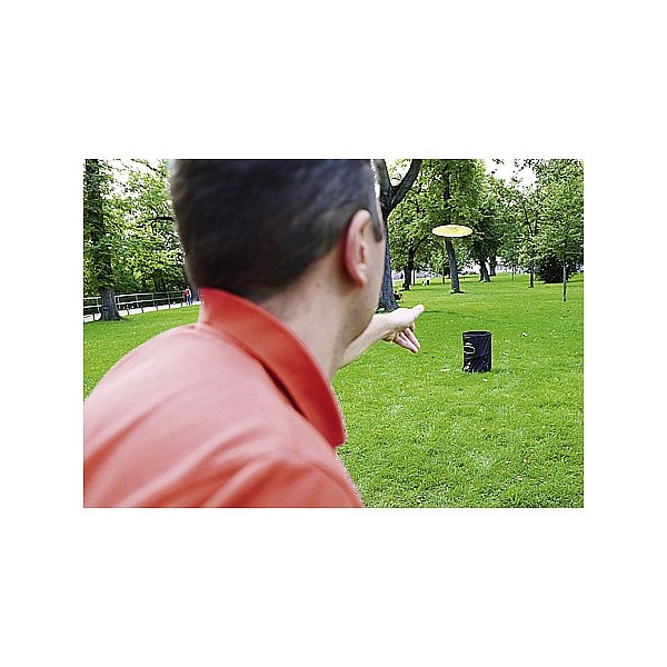 Discgolf wird nach ähnlichem Prinzip wie Golf gespielt. Der Abwurf der Disc erfolgt an einer vorgegebenen Position. Alle weiteren Würfe Richtung Disc Target erfolgen von dem Punkt, an der die Disc zum Liegen gekommen ist. Ziel ist es, mit möglichst wenig Würfen ins Ziel zu treffen. Für die unterschiedlichen Distanzen stehen unterschiedliche Discs zur Verfügung. Das Disc Golf Target aus Polyester kann überall gespielt und vielseitig eingesetzt werden. Sofort spielbereit durch pop-up Funktion. Lieferung inklusive Polyestertasche für einfachen Transport. Abmessungen (L x B x H): 50 x 50 x 60 cm.