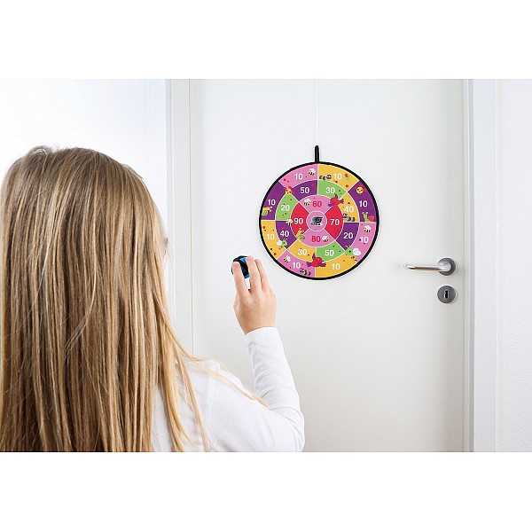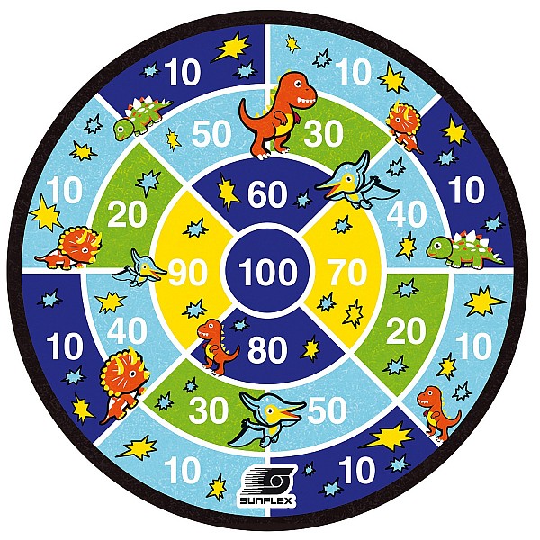 Egal ob im Kinderzimmer oder im Garten - Die sunflex KLETTDARTSCHEIBE YOUNGSTER mit unterschiedlichen Motiven auf Vorder- und Rückseite bietet garantierten Spielspaß und fördert Koordination und Kopfrechnen zugleich. Denn auf dem kindergerechten Dartboard von sunflex, mit dem DINO Design auf der einen Seite und dem BIRD & BEES Design auf der anderen Seite, trainieren die Kinder ihre Treffsicherheit auf der 36 cm großen Zielscheibe. Durch die 6 Kunststoffbälle mit Klettstreifen besteht keine Gefahr von Verletzungen und Beschädigungen an Wänden oder Möbeln.