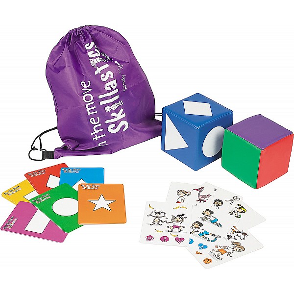 Das Set On the Move Skillastics bietet Kindern der Altersgruppe von 3–5 sowie geistig Behinderten zahlreiche Optionen für kreative und fantasievolle Spiele. Das Set regt ganz ohne Wettkampfelemente zur Aktivität an. Daneben fördern Sie mit On the Move Skillastics auch die kognitiven Fähigkeiten, die zur Erkennung von Farben, Zahlen und Formen nötig sind. Das Spiel hilft Ihnen, diese Fähigkeiten vor dem Eintritt in die Grundschule zu festigen. Die 36 alters- und behindertengerechten Aktivitäten basieren auf einfachen Regeln. Selbst, wenn Sie kein Sportlehrer sind, erzielen Sie mit On the Move Skillastics außergewöhnliche Resultate. Das Spiele-Set peppt in der Grundschule den Alltag auf. Das Material eignet sich genausogut für größere Gruppen und die Arbeit mit geistig behinderten Kindern und Erwachsenen. Das Paket beinhaltet einen praktischen Nylon-Beutel für das Material, 36 Aufgabenkarten, einen Farben- und einen Formenwürfel. Darüber hinaus finden Sie darin detaillierte Regeln. Eine Anleitung zeigt Ihnen, wie Sie die einzelnen Aktivitäten in den Unterricht einbauen.
