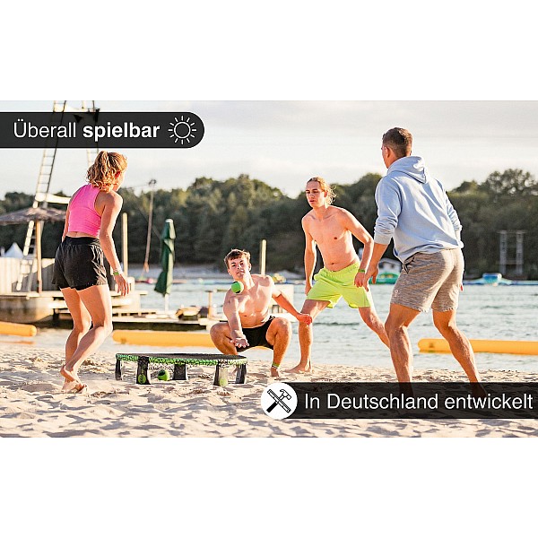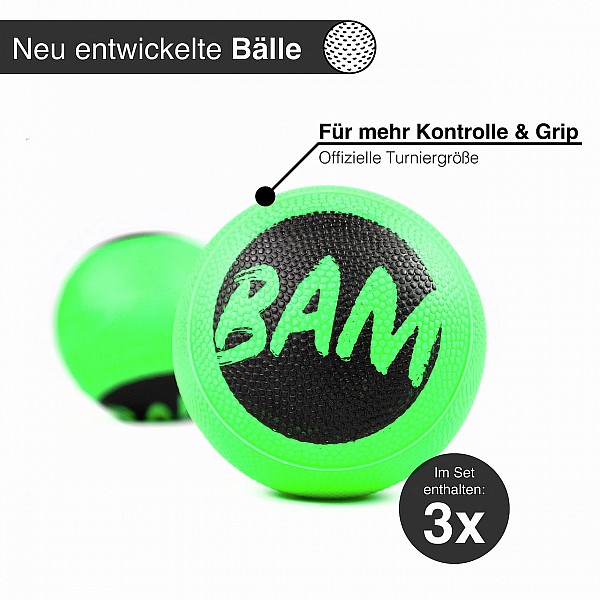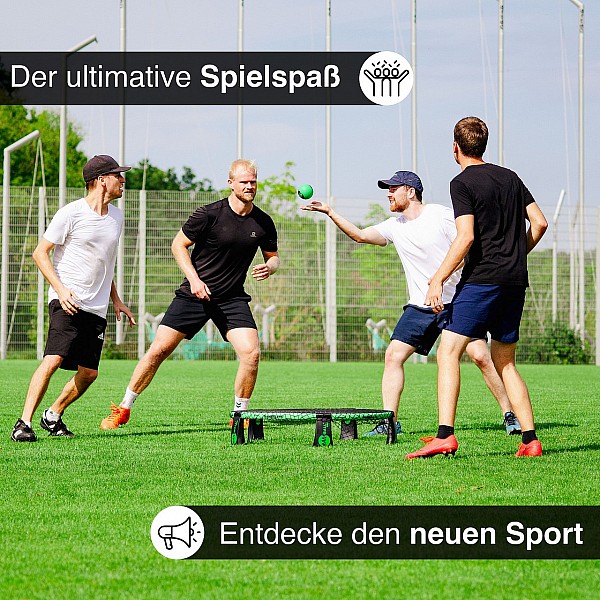 Das BamBall Roundnet Pro Set ist perfekt für alle, die nach einem aufregenden und interaktiven Freizeitspiel suchen. Es ist die ideale Wahl für 2-gegen-2-Roundnet-Spiele, ähnlich wie Volleyball, in Schulen, Vereinen, drinnen oder draußen. Das Set enthält 5 Rahmenteile, 5 Pro Legs, 3 Pro Bälle, eine Pumpe, einen wasserdichten Rucksack, Spielregeln, ein Netz, ein Balldruckmessgerät, Sticker und optional ein Schulunterrichtskonzept. Die robusten Rahmenteile bieten eine stabile Konstruktion, während die neuen Bälle mit verbessertem Material und Griffigkeit für ein besseres Spielerlebnis sorgen. Der Rucksack bietet Platz für alles und das Set ist vielseitig einsetzbar. Tauchen Sie ein in das spannende Spiel mit dem BamBall Roundnet Pro Set!