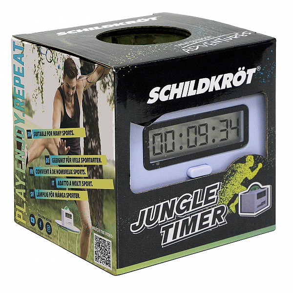 Der Jungle Timer ist ein Gerät zum Messen und Anzeigen von Zeit mit akustischem Signalgeber. Das Zeitmessgerät ist für den Privatgebrauch bestimmt und nicht für gewerbliche Anwendungen geeignet. Er eignet sich hervorragend zur Zeiterfassung nach einem absolvierten Kletterparcours, oder aber für viele weitere Sportarten und Spiele wo die Zeit eine entscheidende Rolle spielt. Beim Drücken auf den Buzzer ertönt ein Signalton und die Zeit wird gestoppt.