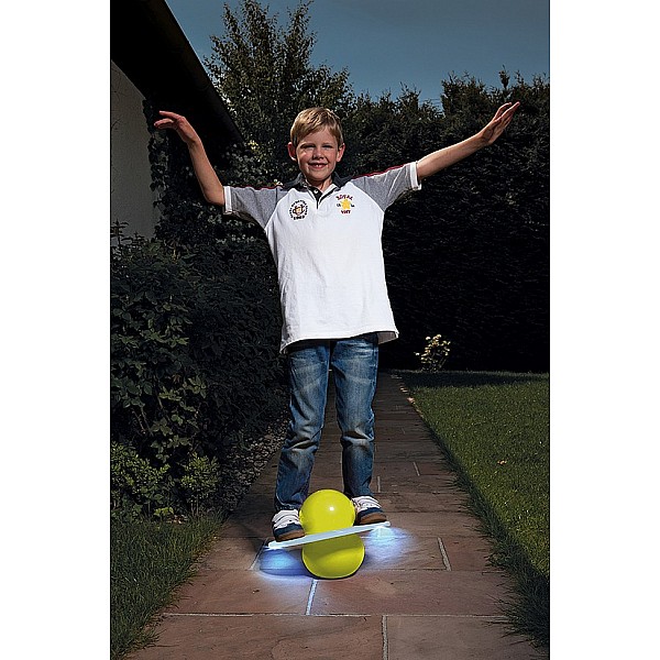 Light Up Saturn Hopper - mit viel Spaß fit und in Form bleiben! Der Saturnhopper ist einfach ein Riesenspaß! Er besteht aus einem Gummiball mit einem mittig sitzenden Ring, der wie eine Plattform zum Stehen benutzt wird. Der Ball wird mit den Knöcheln zwischen den Füßen gehalten und schon kann der Hüpfspass beginnen! Beim Hüpfen wird das Gleichgewicht und die Beinmuskulatur trainiert. Als Special Effekt wird beim Hüpfen im Ball ein Licht aktiviert, das in der Dämmerung und in der Nacht den Spass noch abrundet. Durchmesser ca. 38 cm, belastbar bis 50 kg. Farbe nach Lagerbestand.