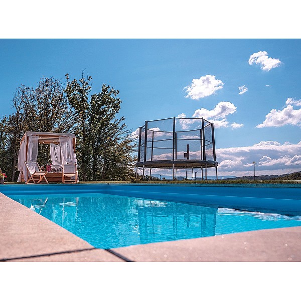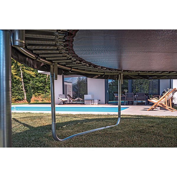 Das sichere Einstiegssystem sorgt jederzeit für Schutz. Kinder vergessen oft, den Reißverschluss am Eingang zu schließen bzw. mit Clips zu verriegeln. Der offenstehende Eingang stellt ein Risiko für Stürze vom Trampolin dar. Das überlappende Eingangssystem ermöglicht das freie Betreten und Verlassen des Trampolins ohne unnötiges Öffnen und Schließen des Eingangs. Die schützenden Randabdeckung ist 30 mm stark.