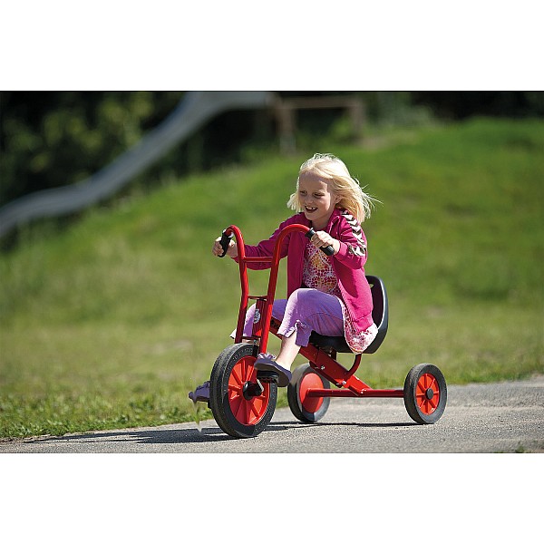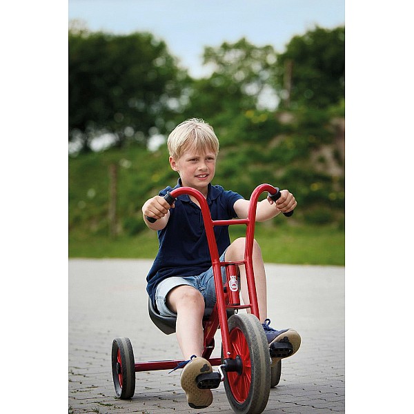 Das Winther VIKING Dreirad maxi ist für Kinder im Alter zwischen 5 und 12 Jahren ausgelegt. Der verstellbare Sitz ist so konzipiert, dass das Dreirad für viele Altersgruppen fahrbar ist. Durch die Form des Chopperlenkers unterscheidet sich das Winther VIKING Dreirad maxi von normalen Dreirädern und ist bei Kindern sehr beliebt. Zusätzlich ist das Dreirad mit einer Anhängerkupplung ausgestattet und kann mit dem passenden Winther Multianhänger oder dem Anhänger Ben Hur verbunden werden. Die stoßfeste Pulverbeschichtung der WINTHER-Fahrzeuge garantiert einen effektiven Rostschutz für lange Lebensdauer und eine hohe Strapazierfähigkeit.