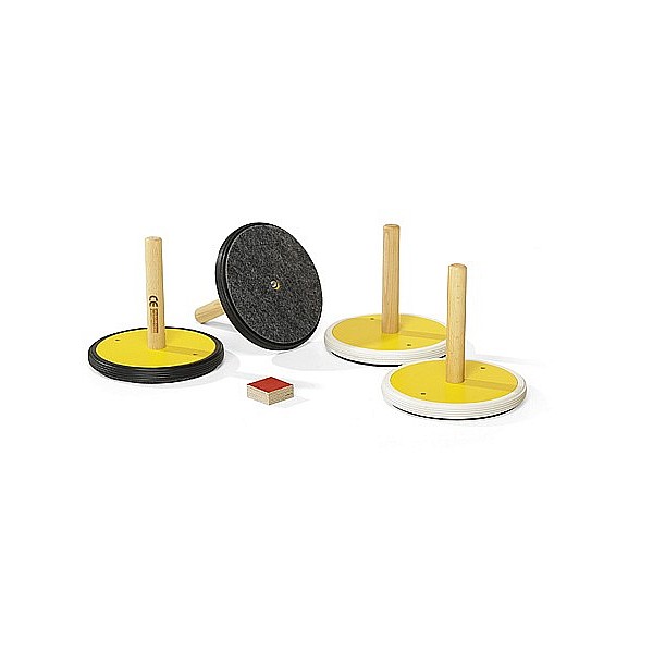 • Holzscheiben mit Filzbelag für die Halle