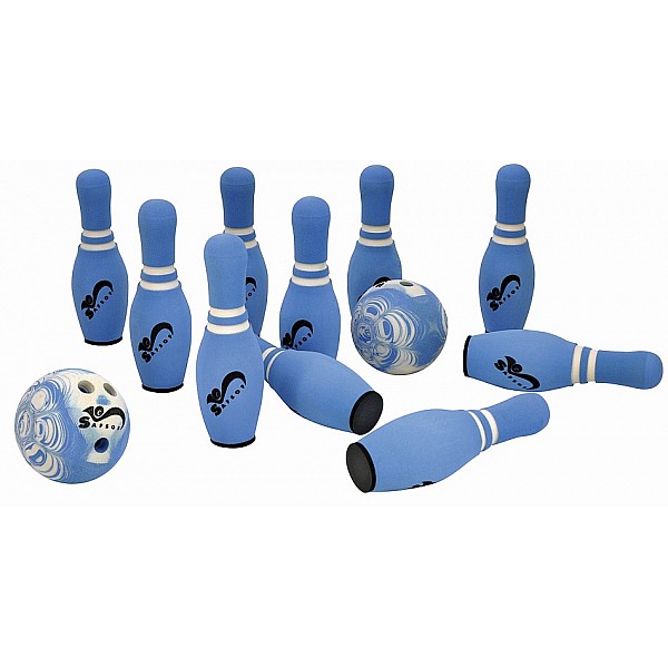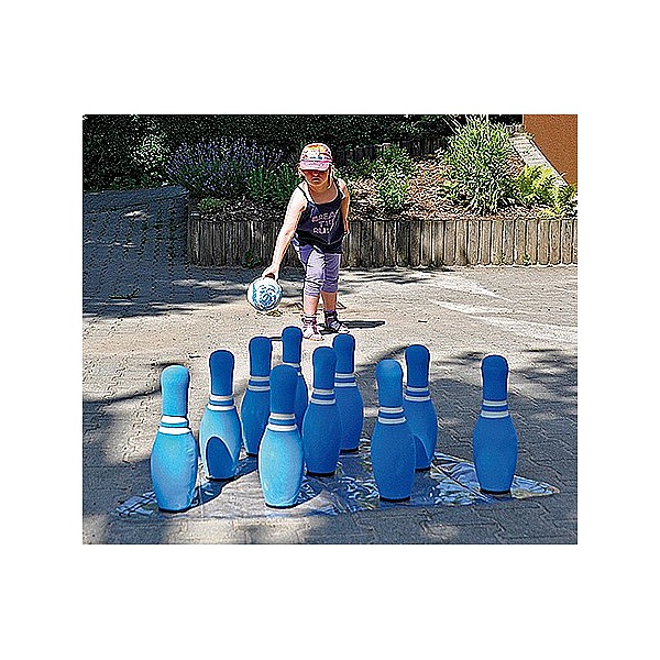 ... Mit der dreieckigen Spielfeld-Schablone ist es ein Leichtes, die 10 Kegel richtig aufzustellen. Bahn frei für die beiden Bowling-Kugeln. Drei Grifflöcher in jeder Kugel geben den Fingern Halt und helfen, die Richtung der Kugeln zu steuern. Inkl. transparenter Tragetasche.