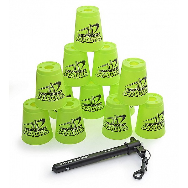 12 originale Speed Stacks GEN3 Bechern. Optimale Erweiterung für noch mehr Stacking-Action. Die Becher sind vorbereitet für die Snap Tops, mit denen jedes Becher-Set individualisiert werden kann. Neben den drei kleinen Löchern für den Luftdurchlass gib es nun auch ein, von der Pro Series bekanntes, großes Loch, das auch zur Aufnahme der praktischen Haltestange dient, mit denen die Bescher leicht zusammen gehalten und transportiert werden können. Die Haltestange ist zusätzlich mit einem Kunststoffkatrabiner ausgestattet, um die Becher an Hose, Rucksack, etc. zu befestigen.
