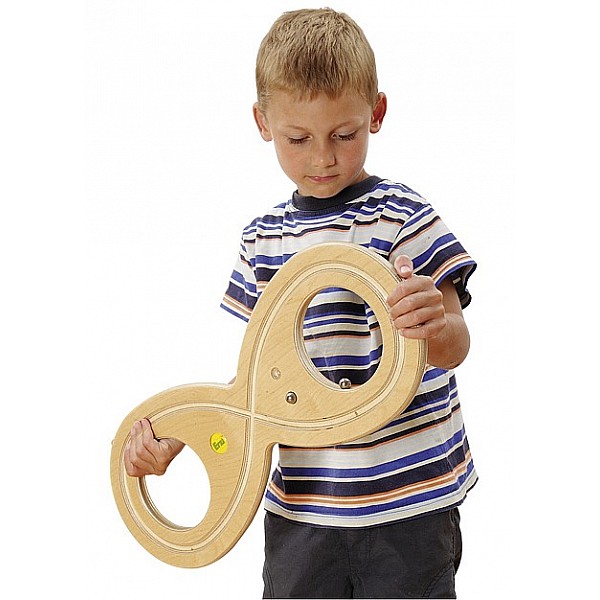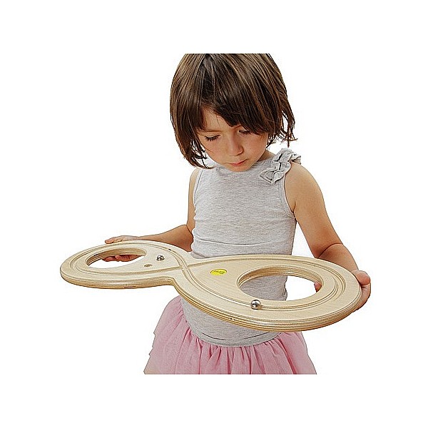 Die Beweglichkeit von Kindern und Erwachsenen wird mit der liegenden Acht auf verschiedensten Ebenen in Anspruch genommen. Beide mitgelieferte Stahlkugeln sind durch eine nicht sichtbare, magnetische Kugelhalterung immer griffbereit und können einzeln oder zusammen in dieses Koordinationsspiel integriert werden. Durch das beiliegende Übungsheft wird das 2D- und 3D-Konzept für dieses Produkt sehr gut veranschaulicht. Mit den innenliegenden Kugelbahnen können zusätzlich noch motorische Übungen im Arm- und Schulterbereich positiv beeinflusst werden.