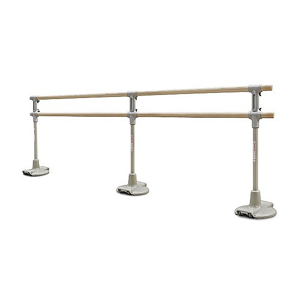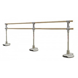 Die geniale und professionelle Doppel-Ballettstange. Ständer mit flachem standfestem Gussfuß und Fahrrollen. Leichter Auf- und Abbau.