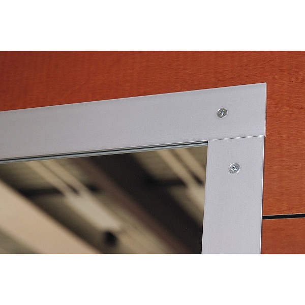 Spiegelwand Kristallglas - Abschlussleiste Aluminium, bestehend aus Spiegeleinzelelement, 6 mm stark, Standardunterkonstruktion aus Holz sowie einer Spiegelabschlußleiste aus Aluminium, Gesamttiefe 50mm