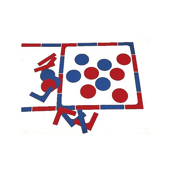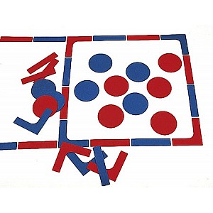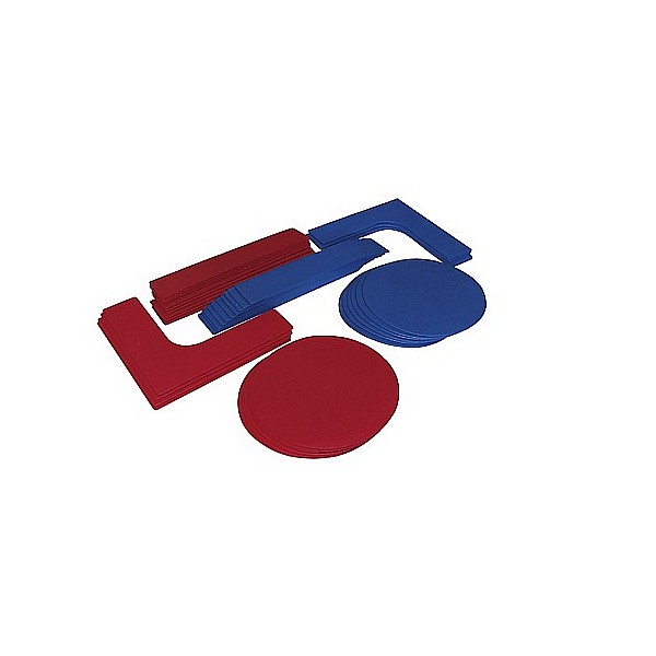 - 6 roten, 6 blauen Scheiben (ohne Aufkleber)