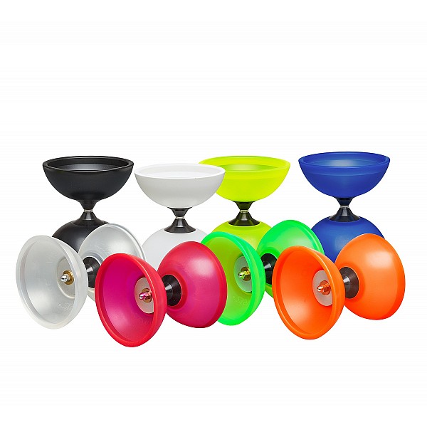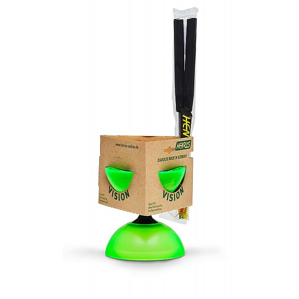Das Diabolo für Profis und Anfänger! Mit den extra breiten Naben ist das Vision leichter zu Fangen und besser für Fingertricks und Grindings geeignet! Auch beim vertikalen Spielen liegt das Vision stabil in der Schnur. Das Vision ist damit das optimale Diabolo für Profis, aber auch ideal für Anfänger. Durch seine Größe und dem Gewicht ist es sehr gut für Kinder geeignet. Die transparenten Halbschalen (außer schwarz und weiß) bestehen aus dem gleichen Material wie Skater-Rollen und sind extrem belastbar. Die Spule besteht aus zwei schwarzen Naben, zwischen denen ein profiliertes, vollverzinktes Stahldrehteil die Schnurlaufrolle bildet. Nach Lagerbestand in den transparenten Farben ice, rot, gelb, grün, blau, orange und in den Vollfarben schwarz und weiß.