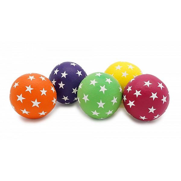 Mit dem bunten Jonglierbälle 5er Set, mit aufgedruckten Sternen, kann das Jonglieren leicht erlernt werden. Die Bälle sind dank ihrer Latexhaut und der Hirsefüllung sehr griffig und nicht springend. Farbig sortiert.