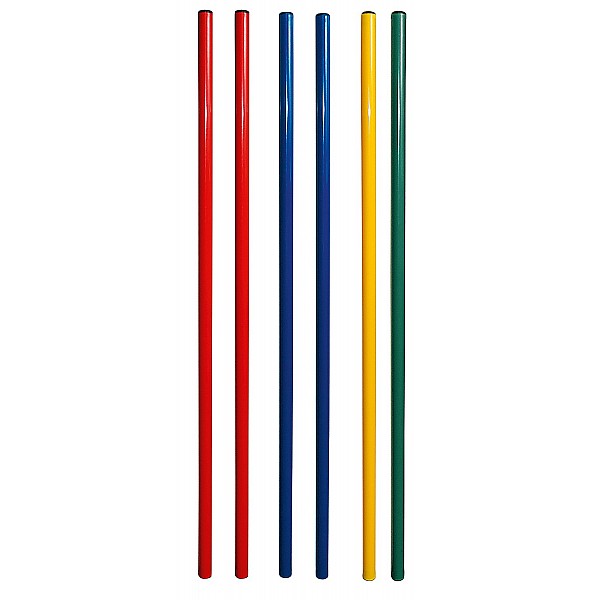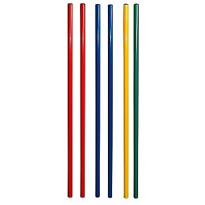 Die vielseitigen Stäbe sind aus stabilem, hochwertigem Kunststoff mit einem Ø von 2,5 cm und sind beidseitig mit Endkappen ausgestattet. Das Set besteht aus 6 Stäben, 100 oder 80 cm lang, in den Farben blau, gelb, grün, rot. Die auch als Turn- oder Gymnastikstäbe gehandelten Kunststoffstäbe sind sehr vielseitig einsetzbar. Von der klassischen Turnübung, über den Einsatz als Slalomparcour, bis hin zum Spieleparcour für die Kleinsten in Verbindung mit Standfüßen, Gymnastikreifen und den entsprechenden Verbindungsteilen (Greifzangen). Die Stäbe sind ein unverzichtbares Hilfsmittel - von der Kita, bis zum Leistungssport! Passendes Zubehör finden Sie in unserem Sortiment.
