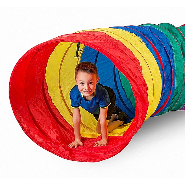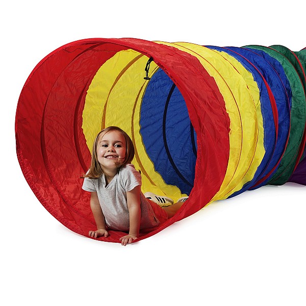 Der große Durchmesser erlaubt auch Kriechgänge. Der Tunnel ist 6-farbig und kann mit weiteren verbunden werden, so dass ein kompletter, kurvenreicher Parcours entstehen kann. Material 100% Nylon, Platzsparend zusammenlegbar, Gewicht 4kg. Achtung! Nicht für Kinder unter 3 Jahren geeignet.