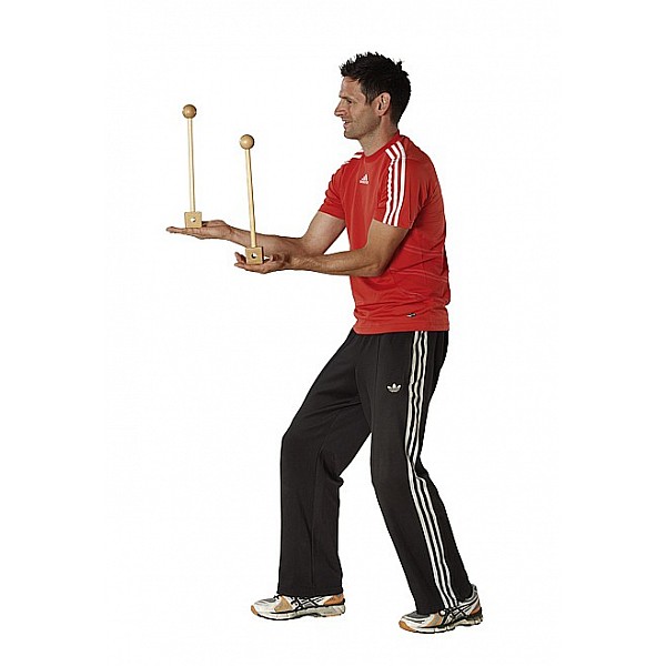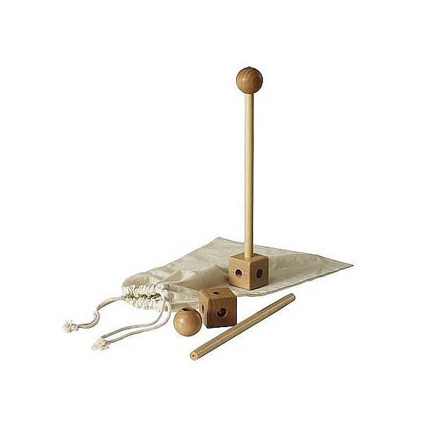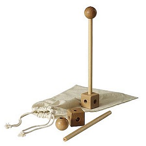Ausführung: 2 Aufsteckkugeln Ø 45 mm , 2 Würfel 50 mm, 2 Rundstäbe 400 mm lang, Ø 15 mm allesamt mit Konus-Steckverbindung und aus Buche gefertigt. Verpackt im praktischen Baumwollbeutel inkl. Übungsanleitung.
