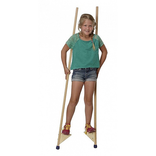 Robuste Stelzen für Kindergarten, Schule und privat mit ergonomisch abgerundeter Festhaltestange und 7-fach höhenverstellbaren Stelzenbacken. Spezielle Antirutsch-Gummikappen ermöglichen das Laufen drinnen wie draußen und machen diese Qualitätsstelzen zu einem äußerst beliebten Trainingsgerät für Gleichgewichtsübungen.