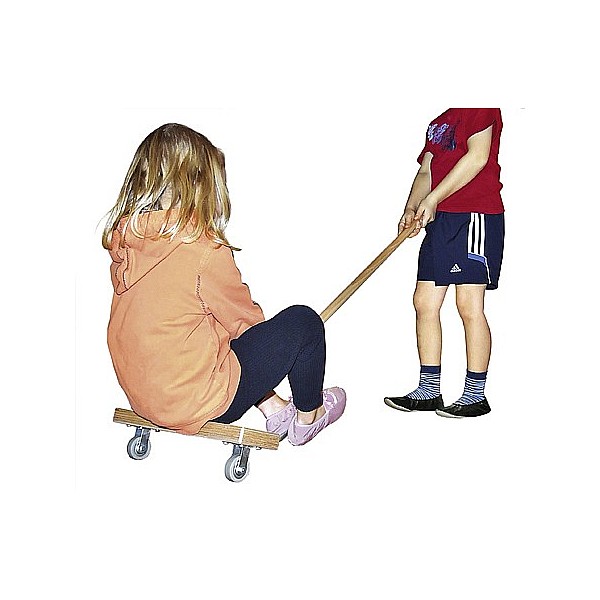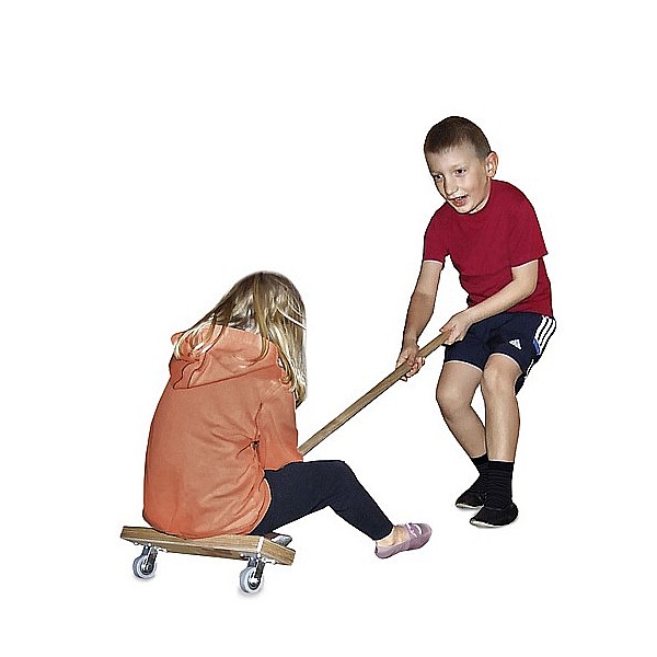 Einfaches, kreatives Spiel- und Sportgerät mit hohem Spassfaktor. Holzkonstruktion mit 2 Bockrollen für Slalom, Geschwindigkeitsspiele, Wettrennen etc. Max. Belastung 45 kg.