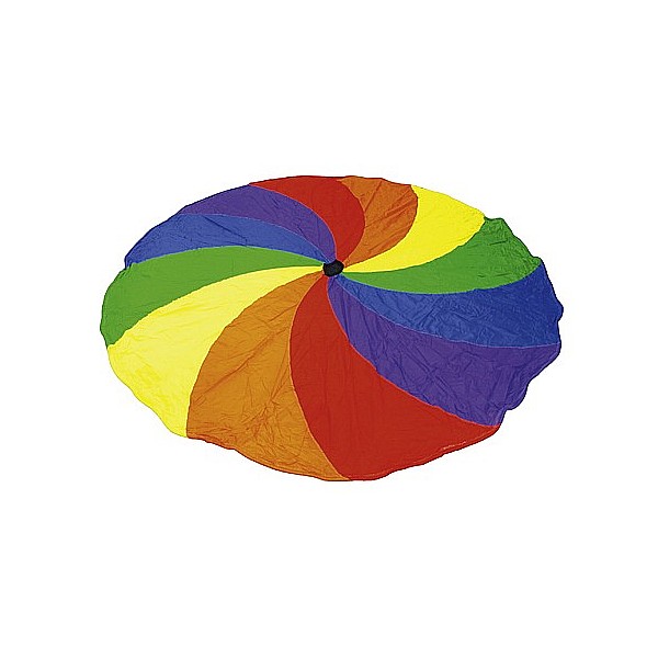 Vierfarbiges Schwungtuch mit einem Durchmesser von 5 m. Die 12 Paneele sind aus sehr haltbarem Dacron-Polyester-Gewebe hergestellt und zusätzlich mit 12 Haltegriffen ausgestattet.