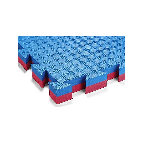 100 x 100 x 4 cm, Härtegrad 30°-35°. Bei dieser Matte gibt es keine Vorder- oder Rückseite, sie ist beidseitig verwendbar und mit einem Reisstrohmuster versehen. Durch die Verzahnung ist ein fester Zusammenhalt der Matten untereinander gewährleistet. Die Matten werden einfach ineinander gefügt. Damit lässt sich jede beliebige Fläche individuell gestalten und lose verlegen. Mit 4 integrierten Randstücken. Offizielle Wettkampfmatte des DBV. Nach DIN EN 1177 Fallschutz 210 cm.
