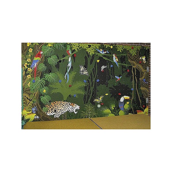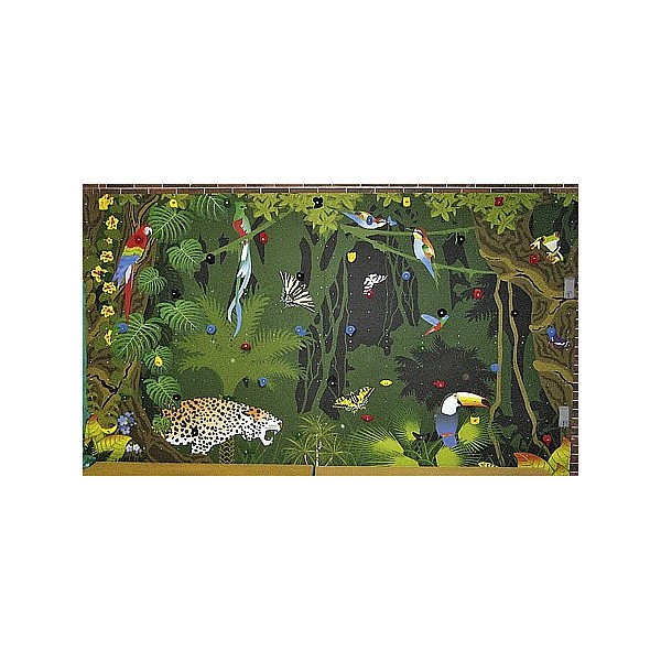 Zusätzlich verfügt die Boulderwand über 101 Klettergriffe speziell für Kinder. Neben schönen Motivklettergriffen (Früchte, Tiere, Gesichter) werden auch pädagogische Klettergriffe wie das Alphabet, die Ziffern 0-9 und die Grundrechenzeichen eingesetzt. Dadurch lassen sich weitere Spiele realisieren - der Dschungel lebt. Das Dschungelmotiv besticht durch seine Farbenvielfalt und den vielen Details - der Blickfang im Kindergarten. Der hochwertige Druck erfüllt die ganze Boulderwand und ist extrem abriebfest. Sie ist ausgestattet mit der Kletterpaneele Indoor Natur Pur. Diese 21 mm starke Paneele bietet 40 Befestigungspunkte pro m2 zum Versetzen der Klettergriffe, damit auch zukünftig Kletterspaß garantiert ist. Wer klettert am schnellsten die Bäume hoch? Wer schafft es als Erster zwei Papageien zu fangen? Die vielen Motive bieten eine Menge Möglichkeiten für Spiel &, Spaß. Das Dschungelmotiv besticht durch seine Farbenvielfalt und den vielen Details - der Blickfang im Kindergarten.