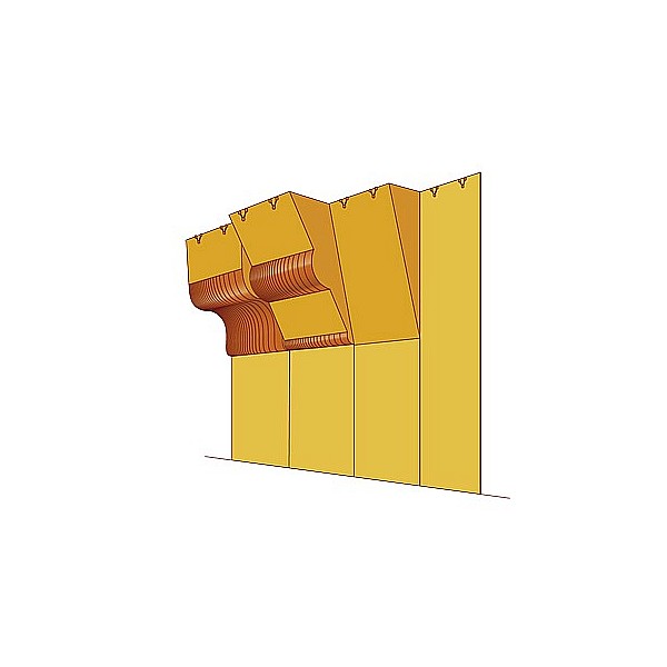 Mit schräg nach oben verlaufendem Überhang, in der Mitte halbrund abgesetzt, mit insgesamt 2,3 m Überhangtiefe. Schichtholz mit Sand-Harzoberfläche. Inklusive 2 Stück Einzel-Top-Rope-Sicherungen gemäß Produktblatt MTM-07 nach DIN EN 12 572. 2,5 x 6 m, 75 Klettergriffe.