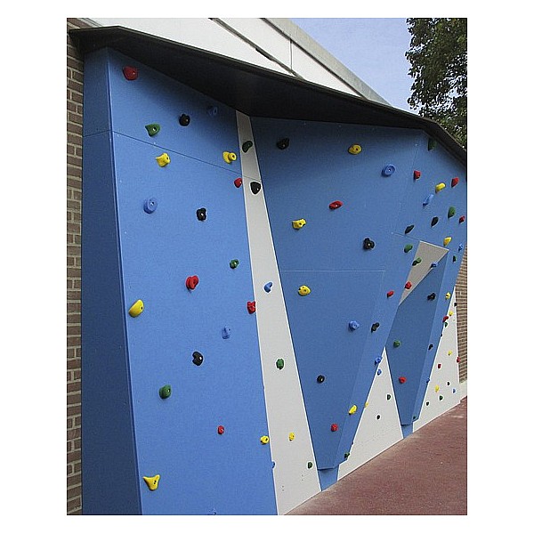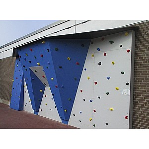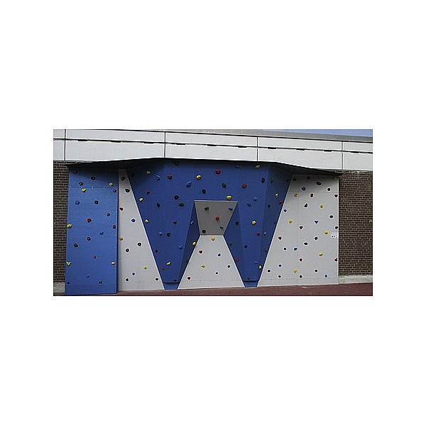 Outdoor-Boulderwand Taufstein. Wunderschöne Boulderwand für Schulen, Freizeiteinrichtungen, Parks, etc. Sie verfügt über verschiedene Wandbereiche und spricht damit Kinder und Jugendliche aller Altersgruppen an. Die Ausstattung erfolgt mit der en Kletterpaneele "Outdoor-Sport". mit einer hochwertigen Quarzsand-Oberfläche und einer Komplettversiegelung speziell für den Außenbereich. Die Einschlagmuttern und Befestigungsschrauben sind aus Edelstahl. 130 e, spezielle Schulklettergriffe laden zum Klettern ein. Die farbenfrohe Wandgestaltung, sowie der zentrale Überhang fallen sofort ins Auge - der Blickfang für jeden Pausenhof. Die Wand erfüllt natürlich die Anforderungen der DIN EN 12572 uind DIN EN1176. Information zur Boulderwand: Breite: 7,44m Höhe 2,98m Kletterfläche: 26m², inkl. 130 er Schulklettergriffe. Inkl. Holzunterkonstruktion für eine Betonwand und Wandschild. Der Fallschutz gehört nicht zum Lieferumfang und muss separat bestellt werden. Preis beinhaltet die Lieferung fr
