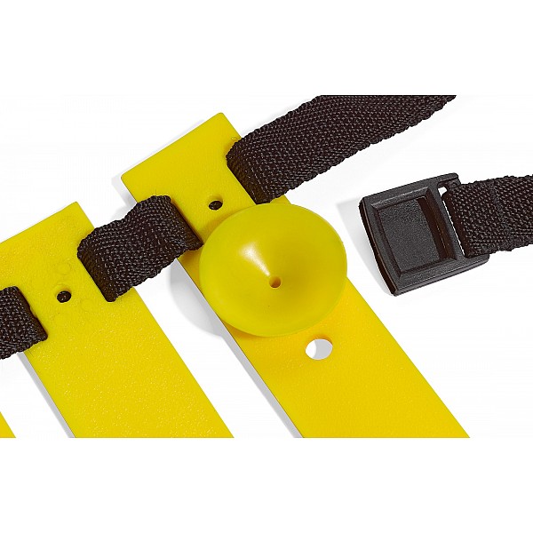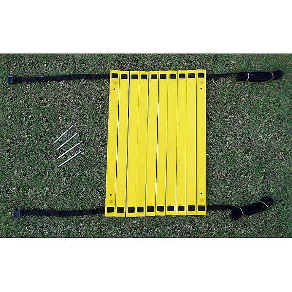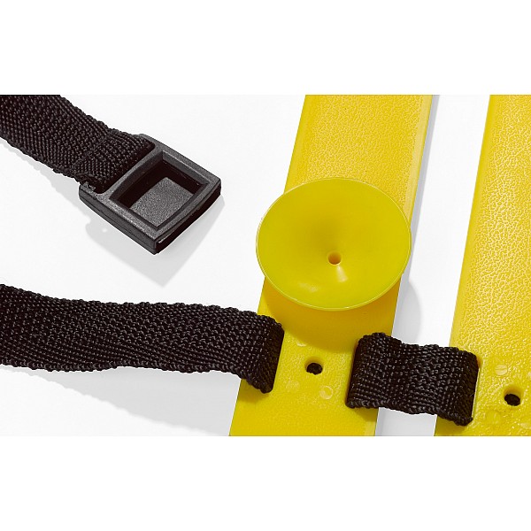 Koordinationsleiter 4 m, 10 verstellbare Sprossen mit einer breite von 57 cm, 4 Erdnägel und integrierte Saugnäpfe für den Innenbereich.