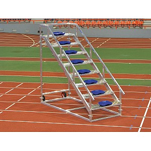 Zielrichter- und Zeitnehmertreppe aus Aluminium für 8 Personen Zielrichter- und Zeitnehmertreppe aus Aluminium für 8 Personen