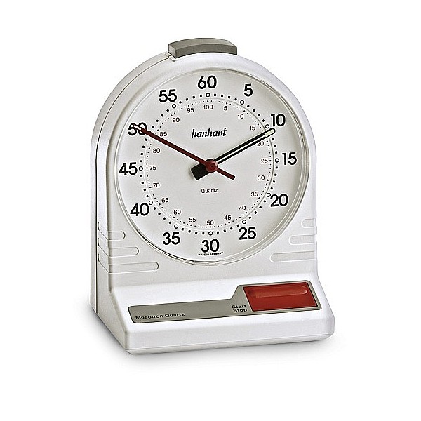 Quarzgesteuerte Tisch-Stoppuhr, Messbereich 0-60 min/0-60 sec. Funktionen: Start, Stopp, Reset, Addition, Flyback. Größe: 175 x 130 x 40/95 mm, Gewicht 375 g.