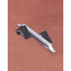 Aluminiumschiene mit leicht verstellbaren Aluklötzen mit Regupol belegt. Klötze werden in einer Führungsnut geführt und werden durch Drehen in der Neigung verstellt.