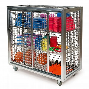 Äußerst stabile und formschöne Ausführung durch Systemprofile. Ober- und Unterteil, Türen, Seitenrahmen und Rückwand, sowie sämtliche Einlegeböden werden als komplette Schweißkonstruktion geliefert, wodurch aufgrund eines speziellen Verbindungssystems eine einfache Montage sichergestellt ist. Die rundum verarbeiteten Aluminium Wellengitter sichern einen optimalen Wasserablauf und ein schnelles Trocknen der Geräte. Bädergerechte, spurfreie und leichtlaufende Räder ermöglichen einen schnellen Transport.