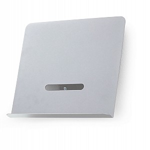 Wandprospekthalter für Prospekte oder Bücher etc. Aus hellgrau pulverbeschichtetem Stahlblech, mit abgerundeten Ecken.