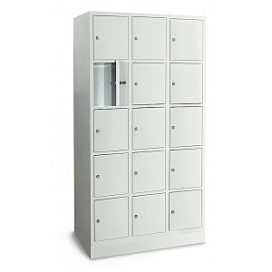 Fächerschrank mit Sockel, 3 Abteile, 15 Fächer