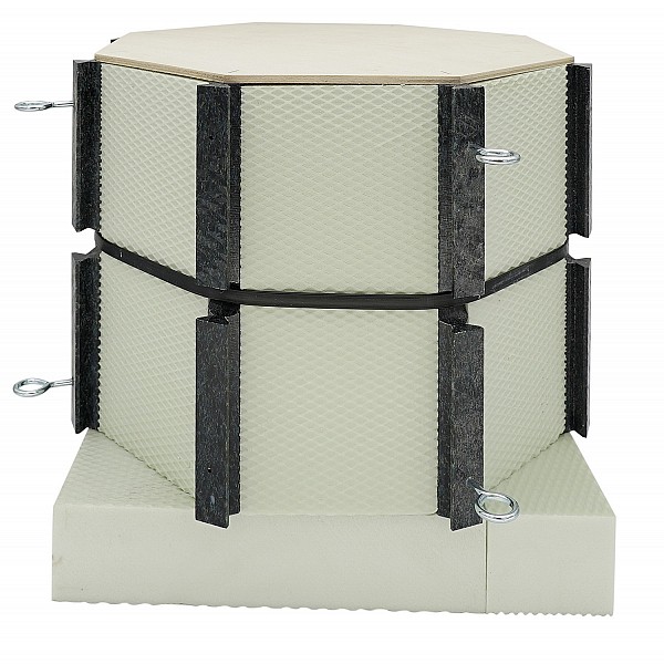 ISO-Adapter, klein, für Spielpfosten-Bodenhülsen, Adapter aus Kunstoffstützgerüst mit Spezialschaumdämmung, sowie Ringanker zur punktgenauen Arretierung durch die Baufirma. Abmessungen (B x H x T): 330 x 310 x 330 mm.