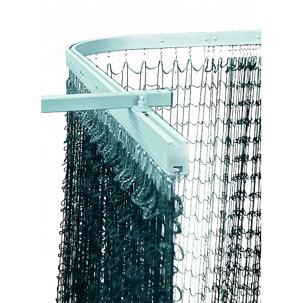 90 Grad, R = 500 mm für Schutznetzanlage, aus stabil geformtem Aluminiumprofil, eloxiert. Komplett mit 4 Rollringen und 4 Karabinerhaken (Einhängehaken) je Bogen.