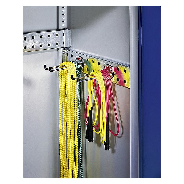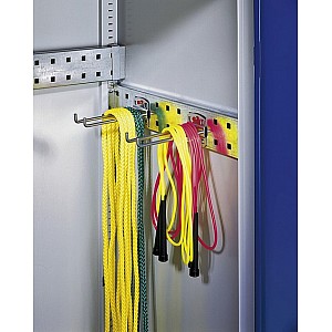 Seitentraverse zu Modul-Sportgeräteschrank 5580, vertikal und horizontal variabel verstellbar, zur individuellen Bestückung mit Reifenhalter oder Haken.
