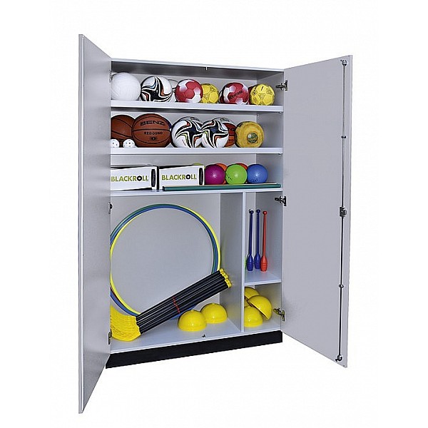 Die Türen sind wahlweise in verschiedenen Dekors lieferbar. Komplett verleimt und mit hochwertigen Beschlägen ausgestattet. Verstellbare Fachböden und Unterteilung je nach Typ. Erhältlich in den Türen-Farben Grau, Rot, Blau und Buchedekor Diese Systemreihe ermöglicht, eine kundenindividuelle Geräteschrankwand zusammenzustellen, welche einschließlich des Lehrerschranks eine einheitliche Schrankfront bildet. Äußerst solide und stabile Ausführung aus 19 mm melaminharzbeschichteten Platten, Korpusfarbe RAL 7035 Lichtgrau. Die Türen sind wahlweise in Lichtgrau, Rot, Blau oder Buchedekor erhältlich. Die Schränke sind komplett verleimt und mit hochwertigen Beschlägen ausgestattet. Verstellbare Fachböden und Unterteilung je nach Typ. Alle Modelle verfügen über eine Mehrfach-Drehstangen-Schließung mit hochwertigem Zylinderdrehgriff-Schloss. Türöffnung max. 270 Grad. Durch die fast unbegrenzte Kombinier- und Erweiterbarkeit der Schranksysteme sind der vielfältigen Nutzung nahezu keine Grenzen gesetzt.