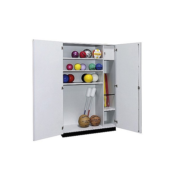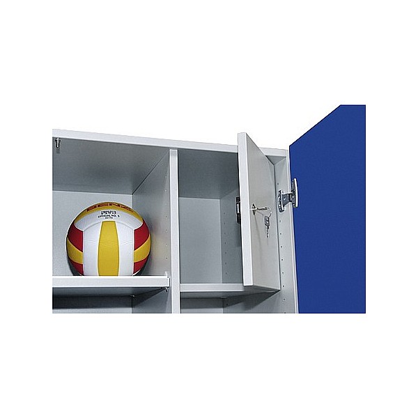 Die Türen sind wahlweise in verschiedenen Dekors lieferbar. Komplett verleimt und mit hochwertigen Beschlägen ausgestattet. Verstellbare Fachböden und Unterteilung je nach Typ. Erhältlich in den Türen-Farben Grau, Rot, Blau und Buchedekor Diese Systemreihe ermöglicht, eine kundenindividuelle Geräteschrankwand zusammenzustellen, welche einschließlich des Lehrerschranks eine einheitliche Schrankfront bildet. Äußerst solide und stabile Ausführung aus 19 mm melaminharzbeschichteten Platten, Korpusfarbe RAL 7035 Lichtgrau. Die Türen sind wahlweise in Lichtgrau, Rot, Blau oder Buchedekor erhältlich. Die Schränke sind komplett verleimt und mit hochwertigen Beschlägen ausgestattet. Verstellbare Fachböden und Unterteilung je nach Typ. Alle Modelle verfügen über eine Mehrfach-Drehstangen-Schließung mit hochwertigem Zylinderdrehgriff-Schloss. Türöffnung max. 270 Grad. Durch die fast unbegrenzte Kombinier- und Erweiterbarkeit der Schranksysteme sind der vielfältigen Nutzung nahezu keine Grenzen gesetzt.