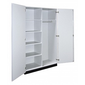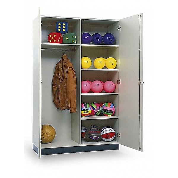 Die Türen sind wahlweise in verschiedenen Dekors lieferbar. Komplett verleimt und mit hochwertigen Beschlägen ausgestattet. Verstellbare Fachböden und Unterteilung je nach Typ. Erhältlich in den Türen-Farben Grau, Rot, Blau und Buchedekor Diese Systemreihe ermöglicht, eine kundenindividuelle Geräteschrankwand zusammenzustellen, welche einschließlich des Lehrerschranks eine einheitliche Schrankfront bildet. Äußerst solide und stabile Ausführung aus 19 mm melaminharzbeschichteten Platten, Korpusfarbe RAL 7035 Lichtgrau. Die Türen sind wahlweise in Lichtgrau, Rot, Blau oder Buchedekor erhältlich. Die Schränke sind komplett verleimt und mit hochwertigen Beschlägen ausgestattet. Verstellbare Fachböden und Unterteilung je nach Typ. Alle Modelle verfügen über eine Mehrfach-Drehstangen-Schließung mit hochwertigem Zylinderdrehgriff-Schloss. Türöffnung max. 270 Grad. Durch die fast unbegrenzte Kombinier- und Erweiterbarkeit der Schranksysteme sind der vielfältigen Nutzung nahezu keine Grenzen gesetzt.