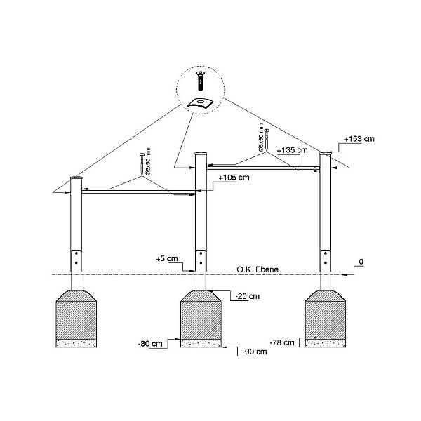 - Höhe Reckstangen: 105 cm und 135 cm
