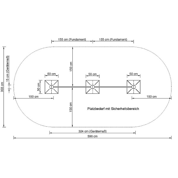 - Fallbereich: 5,96 x 3,03 m