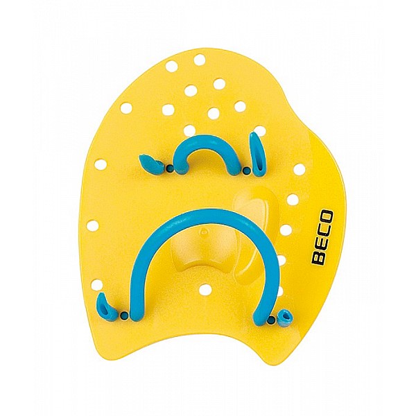 Schwimmpaddles, Gr. S, gelb, hydrodynamische Form mit verstellbaren, runden Silikonbändern. Die flachen Paddles dienen zur reinen Kraft- und Ausdauerschulung.