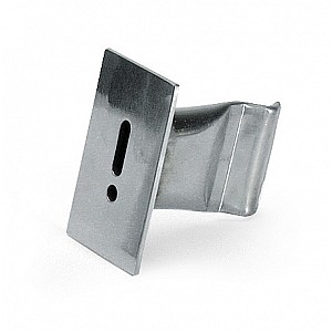 Polierte Deckplatte mit Einhängeschlitz für Startleinen, aus rostfreiem Edelstahl. Einschließlich Maueranker zum Einbetonieren in Beckenwand.