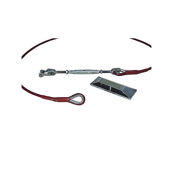 Geprüftes, verzinktes Stahlseil (Ø 10 mm), mit PVC-Schutzschlauch-Überzug. Bei Bestellung bitte lichtes Einhängemaß angeben.