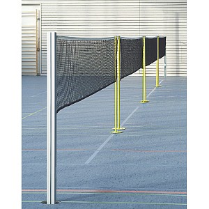 Freistehender Netzpfosten / Netzstütze, für Doppelfelder / Mehrfachfelder zur Abstützung des Spannseils bei Gebrauch mehrerer Netze nebeneinander. Mit Tellerfuß zur Schonung des Sportbodens.